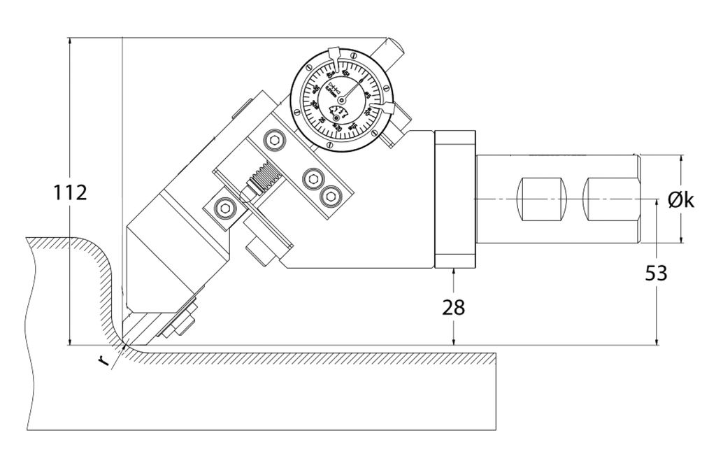 for burnishing radii. The angle of the roller can either be 45° or 90° and enables you to process the whole