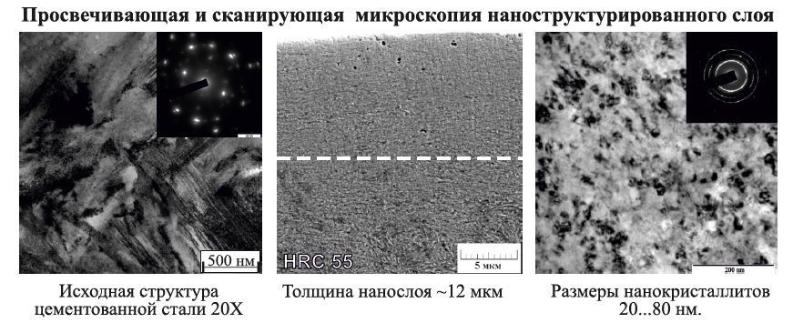 Обеспечивается упрочнение поверхностного слоя в 1.3...2 раза относительно исходного состояния.