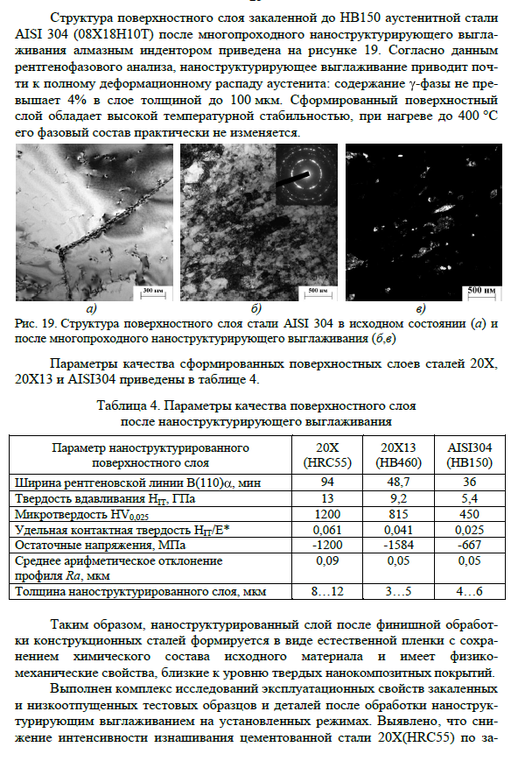 Остаточные напряжения достигают 1950 Мпа и формируется микропрофиль с Ra = 3.2...60 нм.