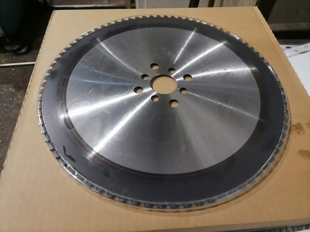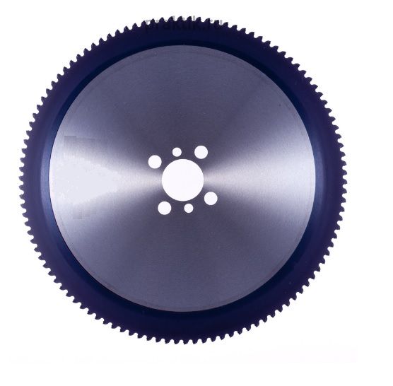 Дисковая пила с зубьями (напайками из металлокерамики (кермет), неперетачиваемые, с покрытием PVD, предназначена для резки прутка с толщиной до 30 мм, из средне и высоколегированных сплавов и нержавеюще стали на статических дисково-отрезных автоматических станках (монопильных).