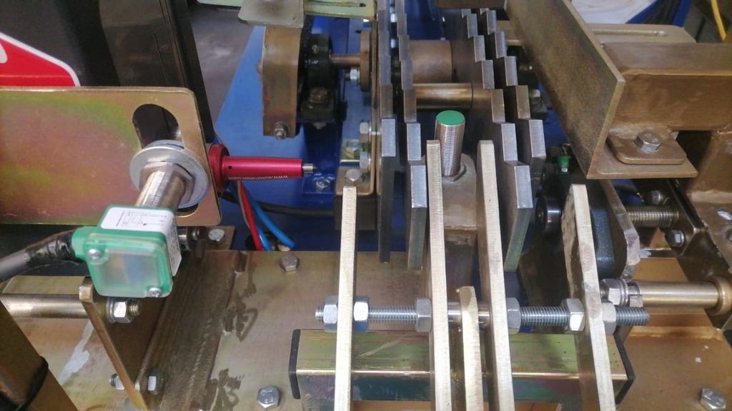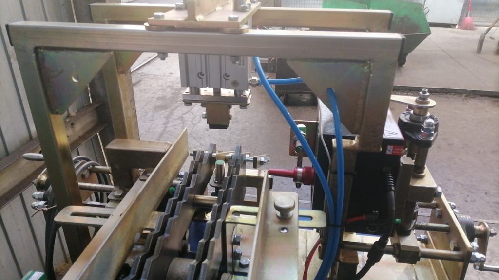 Оператор размещает шпильку в накопительном устройстве с шаговым конвейером. Затем она перемещается в зону маркировки, где происходит нанесение клейма. После маркировки шпилька удаляется с линии, и процесс повторяется. Продолжительность цикла составляет 5-6 секунд.