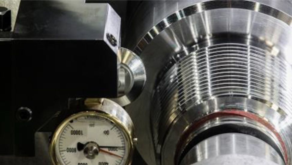 Operating principle: A hardened roller, similar in profile to the thread to be produced, is placed in contact with the root radius of the tapered thread. Pressure is then applied to force the roller into the shear surface of the root radius, displacing and cold deforming the surface material.