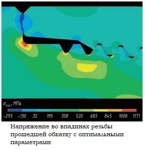 Промышленный опыт использования процесса холодного накатывания корня резьбы свидетельствует об увеличении усталостного ресурса в 3-5 раз по сравнению с аналогичными необработанными соединениями в тех же рабочих условиях.
