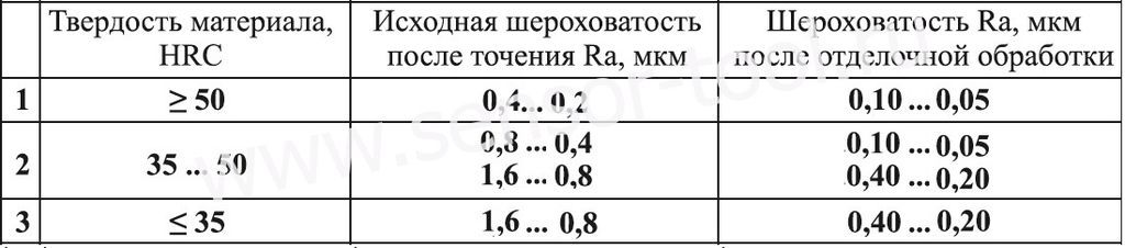 Recommended initial roughness Rа 1,6...1.25