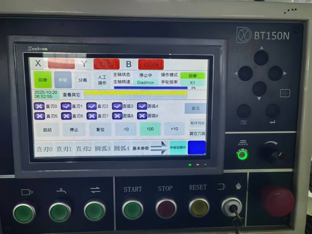 BT-150N — это четырехкоординатный станок для заточки инструментов с ЧПУ, состоящий из четырех осей: оси вращения шлифовального круга (ось X), оси угла наклона шлифовального круга (ось B), оси горизонтального вращения заготовки (ось C) и оси подачи заготовки (ось Y). Ось подачи заготовки (ось Y) оснащена линейкой для обратной связи по положению с замкнутым контуром, что обеспечивает микронную точность шлифовки. Станок подходит для производства средних и больших объемов пластин из сплавов, поликристаллического алмаза и кубического нитрида бора. После завершения выравнивания и нажатия кнопки система автоматически завершит шлифовку под действием силы тяжести молотка, обеспечивая идеальное состояние «шлифовки с постоянным давлением и гибкой подачей». Станок может быть переключен в ручной режим через панель управления, что позволяет адаптироваться к режиму производства небольших и средних партий и множества разновидностей.